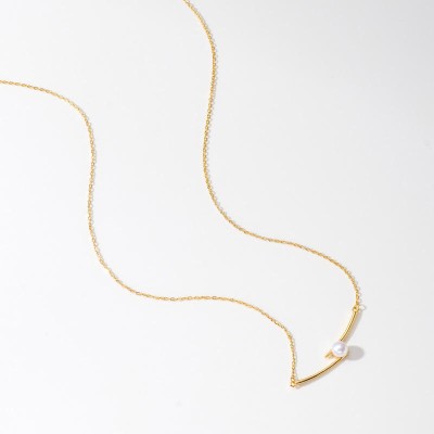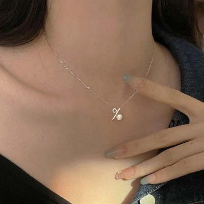 Sterling silver freshwater pearl necklace Korean fashion simple luxury strip initial necklace Jewelry accessories for women