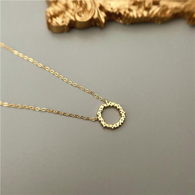 S925 sterling silver plated 14K gold necklace zircon full diamond circle wreath pendant collarbone chain women's jewelry