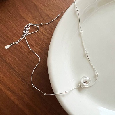 Silver Ball Snake Chain Necklace Personalized 925 Sterling Silver Fashion Jewelry Necklaces