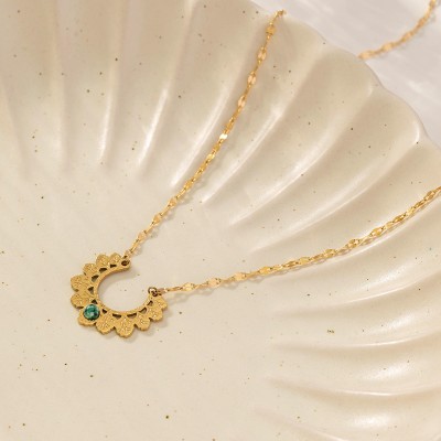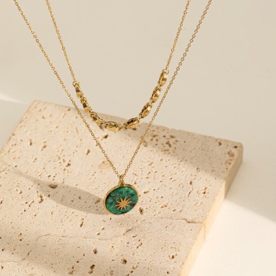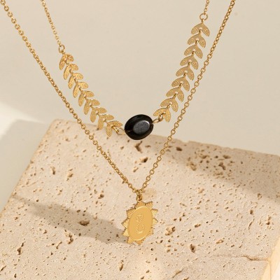 New Vintage Stainless Steel Women's Necklace Luxury Natural Gem Leaf Pendant Personality Everything Stylish Temperament Trend
