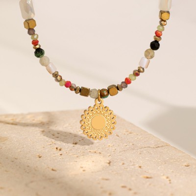 Stainless Steel Gold-Plated Women's Necklace Fashion Personality Sunflower Pendant Trend All-Match Vintage Beaded Accessories