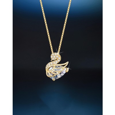 2024 Fashion Women's Jewelry New 18k gold plated stainless steel necklace Elegant Crystal Swan Pendant Initial Necklace