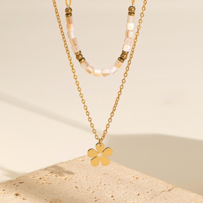 New Stainless Steel Women's Necklace 18k Gold Plated Fashion Flower Pendant Trend All-Match Luxury Vintage Beaded Accessories