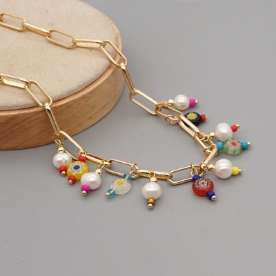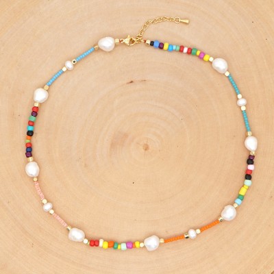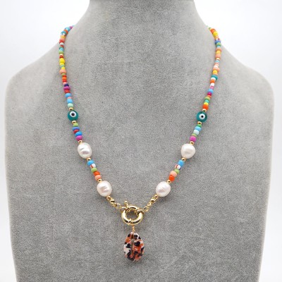 Boho Summer Beach Necklace Colorful Beads Jewelry Handmade Beaded Freshwater Pearl Necklaces For Women Gift