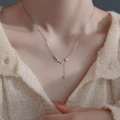 Fashion Jewelry Necklace for Women Simple Zircon Wheat Ear Charm Necklace New Y-shaped clavicle chain leaf necklace